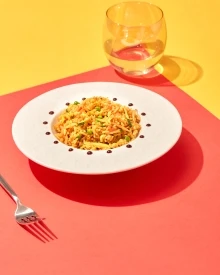 Abbiamo lavorato insieme a Eva Andrini, De Agostini e Zenzero Talent Agency per sviluppare un immaginario coerente: una moodboard pop, dai colori accesi e contrasti netti, capace di esaltare ogni piatto senza sovrastrutture. La semplicità come scelta estetica: il cibo come vero protagonista.